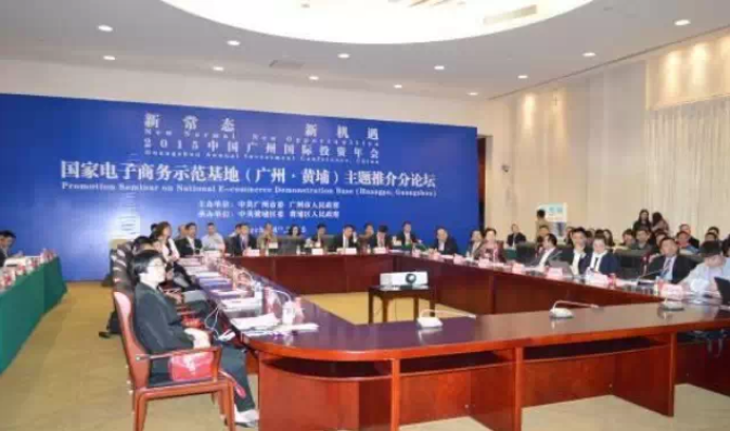 2015中国广州国际投资年会——国家电子商务示范基地(广州·黄埔)主题推介分论坛,市长陈建华在会上做主题推介,杭州程阳视觉艺术传媒有限公司董事长官金仙女士就国家电子商务示范基地——状元谷电子商务产业园做重点介绍;亚马逊、省电子商务商会、京东商城、酒仙网、苏宁云商等知名电商企业代表在会上发言交流。